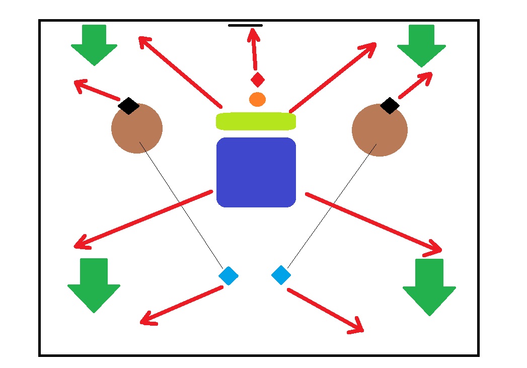 красный - танк, коричневый - босс, синие в центре - менсы, синий слева - хм, зеленые ханты (хры) и бурги бьют серых троллей. внизу фиолетовые воители и рыцари бьют черных аванков и драконетов, отбегают вниз в фиолетовый закрашенный кружок.